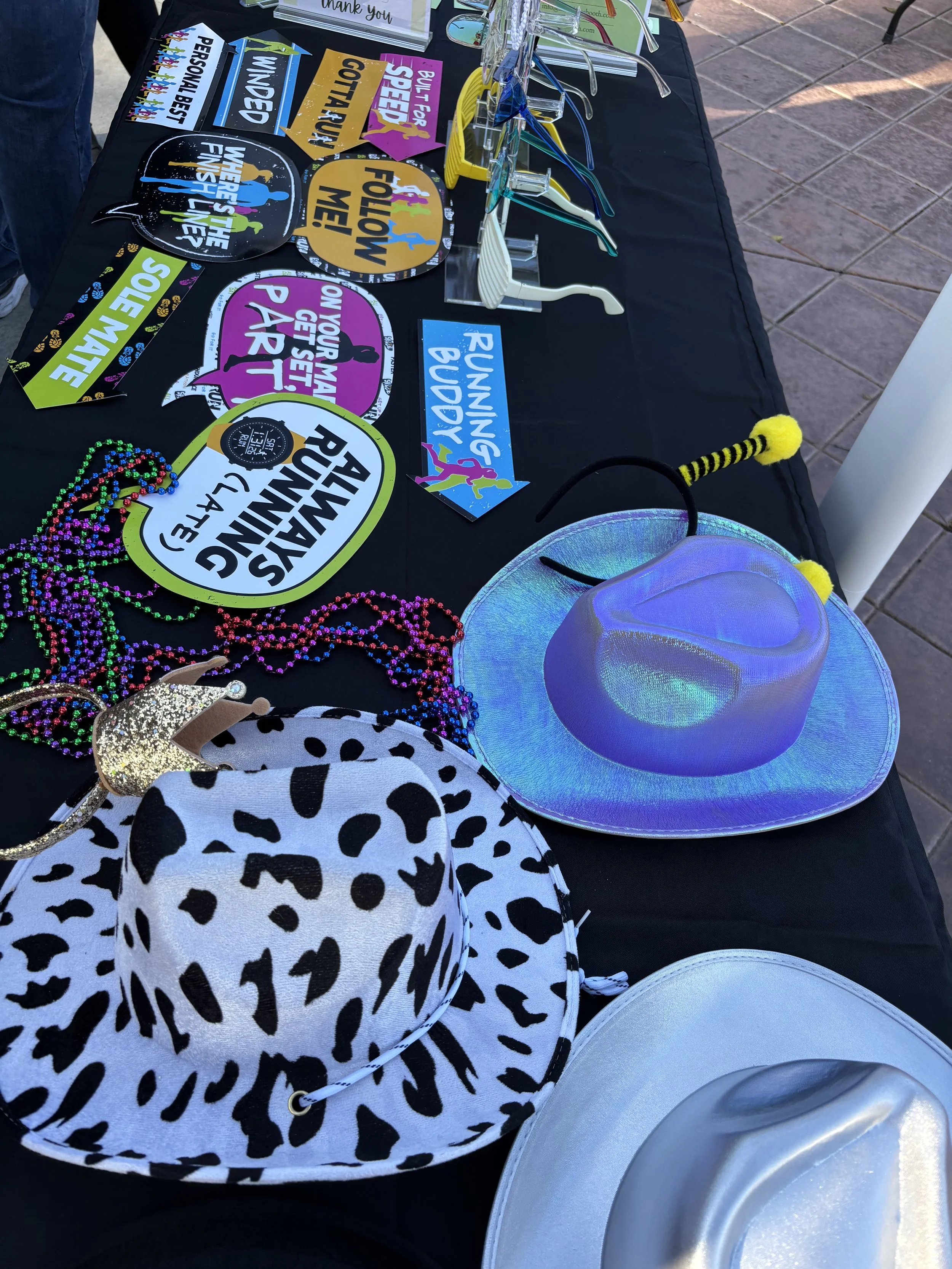 Fun accessories provided in the photo booth that allow guests to get creative with their photos. Such as silly glasses, funky hats, or funny signs.